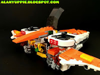 While building this guy, I was reminded of Transformer Strafe, from team Technobots due to it's color scheme and futuristic space jet mode.